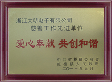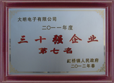 努力拼搏,换来的是令人称羡的荣誉,在瞬息万变的市场竞争中,大明人凭着矢志不移的信念,团结拼搏、荣辱与共,达至成功的彼岸,创就今日的辉煌。浙江大明汽车电子股份有限公司多年来多次获得“明星企业”、“科技先进单位”、“优秀供应商”等光荣称号。  |  |  | | A级纳税信用企业 | 2010理事单位 | 2010明星企业 | | | | |  |  |  | | 2010三十强企业 | 2010年度先进单位 | 2010先进党组织 | | | | |  |  |  | | 爱心奉献 共创和谐 | 2011标准化企业 | 2011慈善工作先进单位 | | | | |  |  |  | | 2011虹桥人力资源会员单位 | 2011科技创新先进单位 | 2011年度明星企业 | | | | |  |  |  | | 2011三十强企业 | 2011先进单位 | 优秀供应商 | | | | |  |  |  | | 2011总商会副主席单位 | 2012创先争优先进基层党组织 | 乐清慈善贡献奖 | | | | |  | | | | 温州市知名商标 | | | | | | |